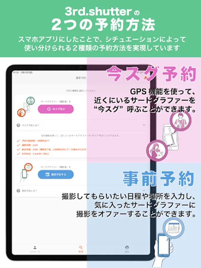 Match with nearby third graphers using GPS function. Useful when you want to call a third grapher to Sugu now.