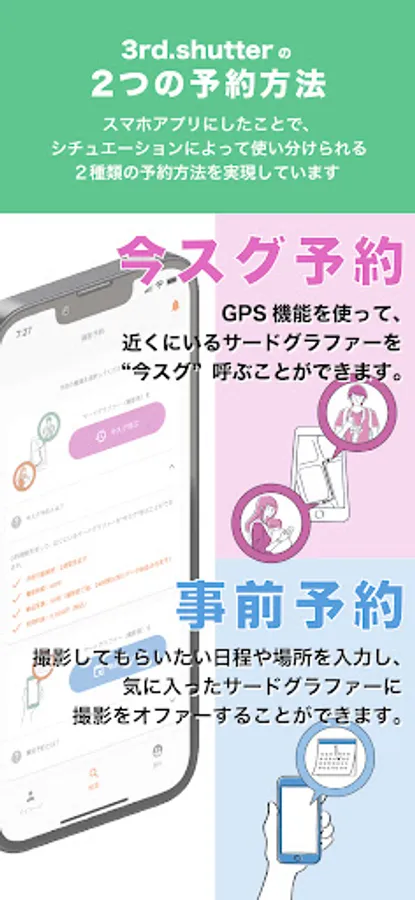By using a smartphone app, we have realized two types of reservation methods that can be used properly depending on the situation.