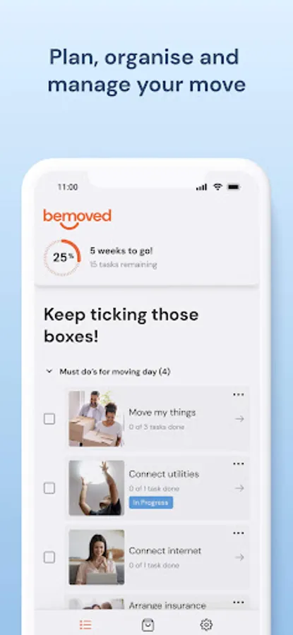 Moving house stressing you out? BeMoved makes it simple. Plan, organise and manage your move all in one place with our fuss-free moving app. From arranging removalists to connecting utilities and buying home insurance, a seamless move is at your fingertips.