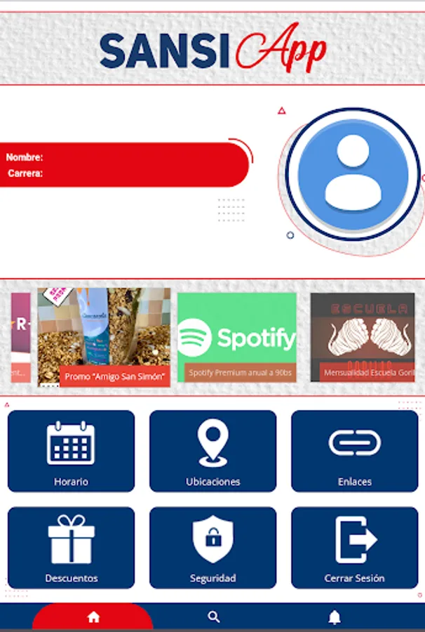 SANSI App allows access to relevant information for UMSS students such as schedules, important locations, links and also offers a specific section for a set of benefits as a student. These benefits can be, for example: Discounts on services such as cinema, transportation, health, entertainment, etc.