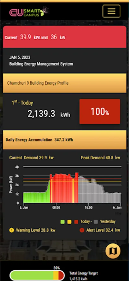 Building Energy Management System at Chamchuri 9 building is the energy monitoring system that display energy consumption in building, floor and area level for guide the officer to help saving energy.