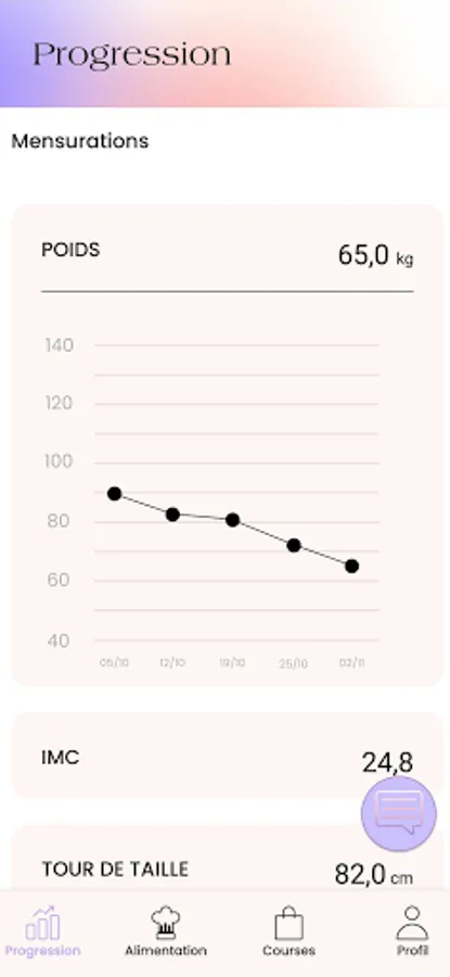 From day one, your coach helps you learn and maintain healthy behaviors in terms of nutrition and healthy living: chat with her via your email, receive tool sheets, and messages full of encouragement to help you in your journey. It is also via the application that you will be able to benefit from your monthly or bi-monthly consultations with your coach.