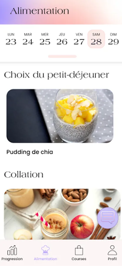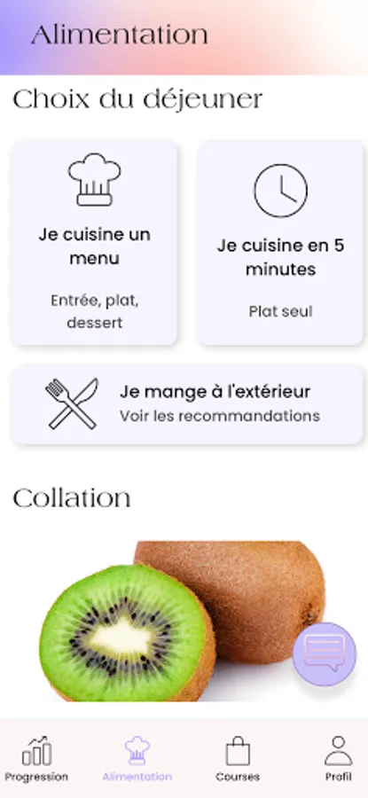 Receive and consult your food program adapted to your needs and habits. The recommendations adapt to your lifestyle, with menus broken down into recipes to prepare in 5 minutes, meals to cook, or recommendations for restaurant outings or dinners with friends.