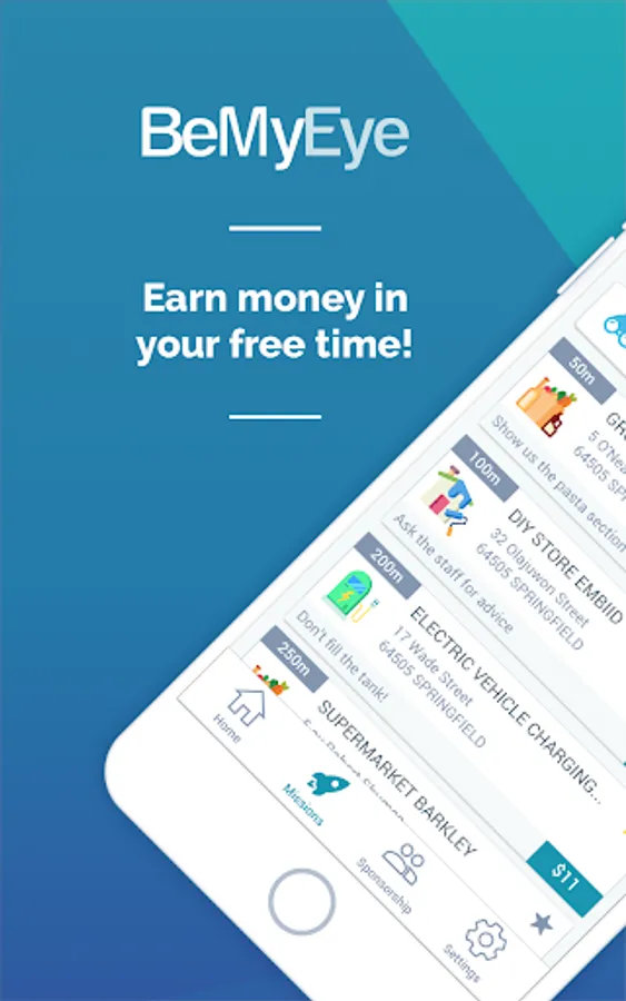Want to find easy and fast side jobs to make money in your free time? Download the BeMyEye app today and discover the missions available around you.