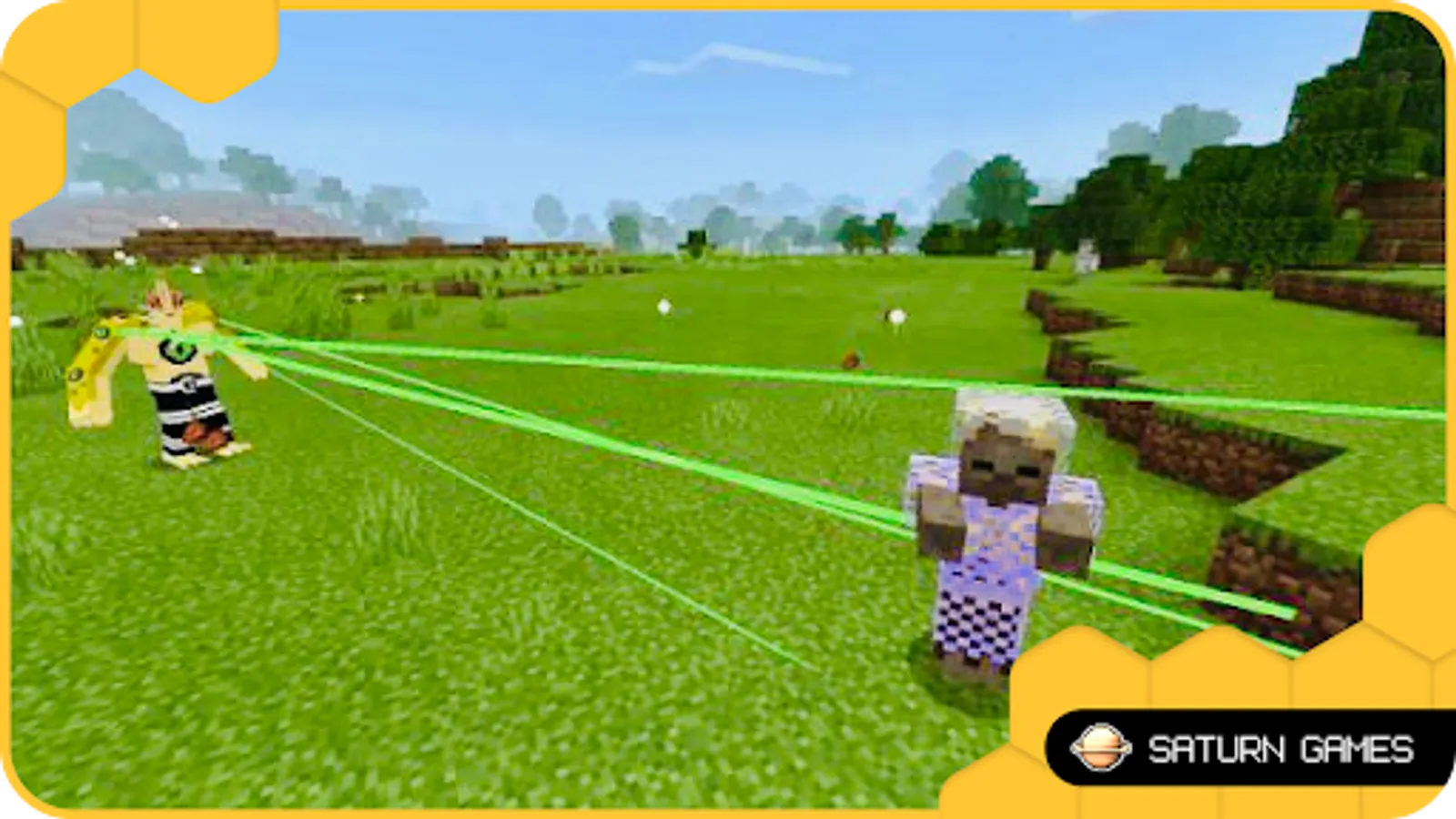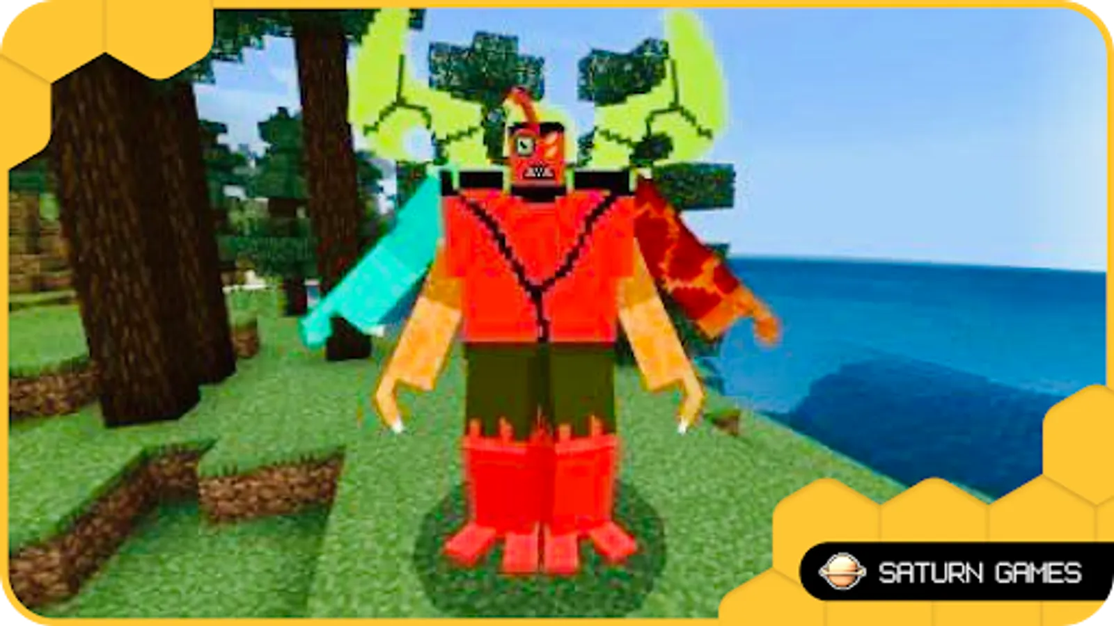 "Play as Ben Tennyson in Minecraft PE with the Ben 10 mod! Get the Omnitrix and transform into alien creatures, battling villains across the universe. Embark on exciting adventures, defending Earth alongside Gwen and Uncle Max!"