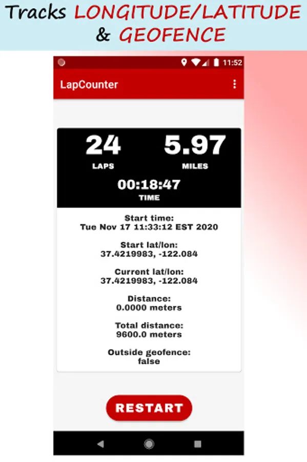 LapCounter keeps track of where you are and when you run back to the starting position. No extra gadgets to wear or confusing apps to do this. This is your one stop app to track your progress.