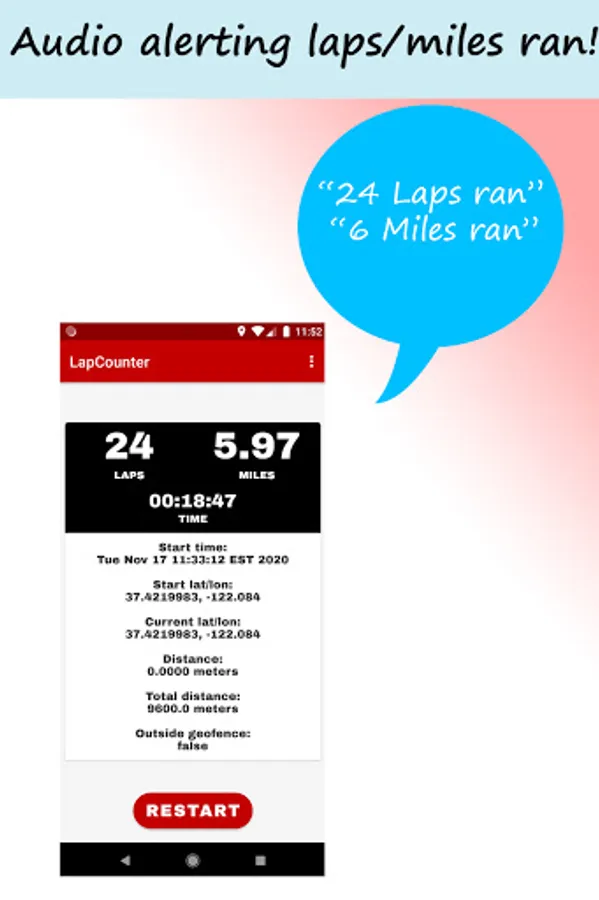 💗 Friendly voice who tells you how many laps and miles you have ran!