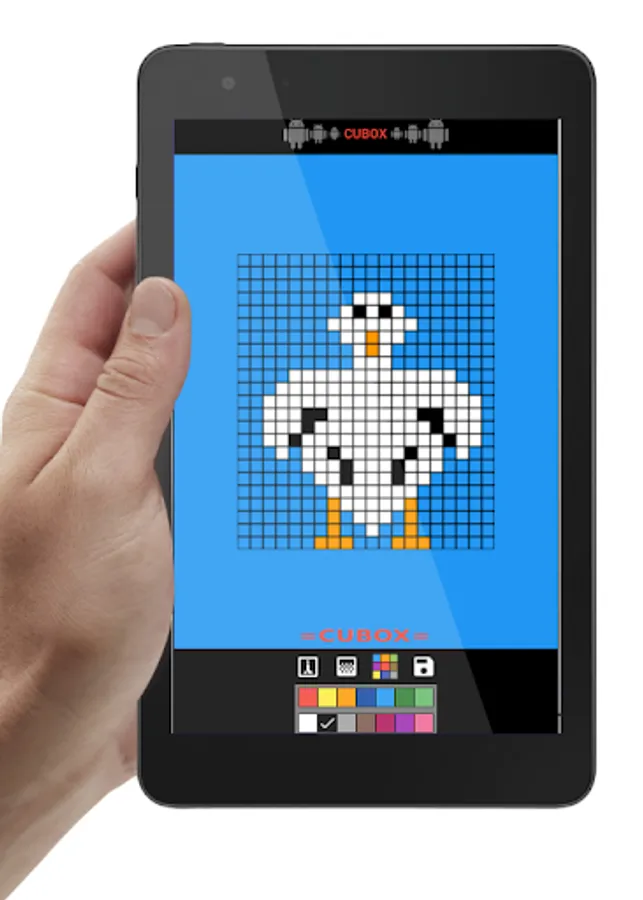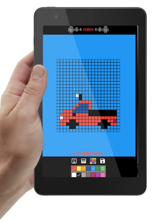 CuboX is free and gives you a checkered sheet and many tools to create what you like in retro style by coloring in pixels.