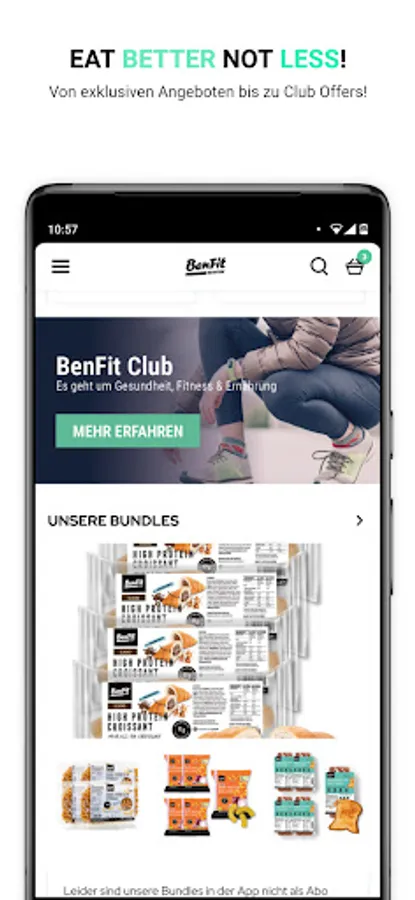 BenFit Nutrition - your shop for a more conscious diet and lifestyle. Use our app to order our snacks, pasta or baked goods with just a few clicks in our app. And that only in a few minutes!