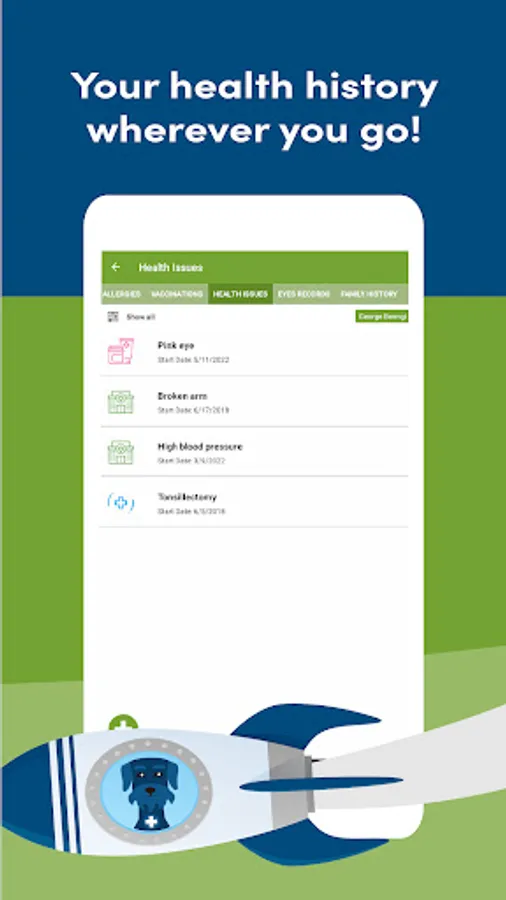 All your health history in the palm of your hand. No more digging through old file cabinets to search for what vaccinations you had done 5 years ago. Now you can be the scribe for your medical history.