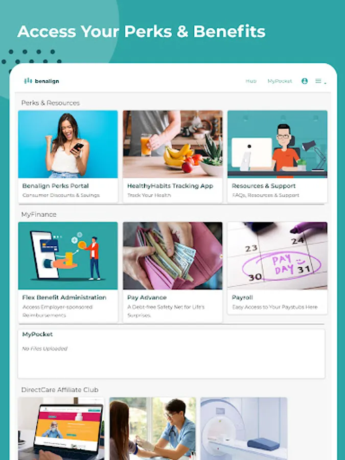 Benalign's My Benefits Hub is a digital app platform that serves as the main access point for: