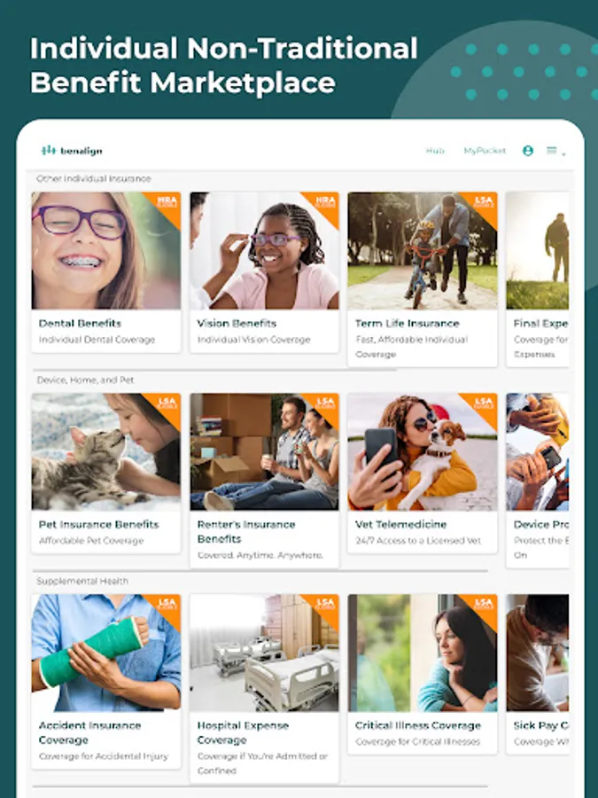 Benalign Hub is a digital app that aligns employee perks & non-traditional benefits to make daily life so much better! We're here to help you relieve the stress of daily living with real savings. Our employee perks program offers discounts and savings on consumer items you need daily, as well as when it’s time for a major expense. We also offer an individual non-traditional benefit marketplace with over 20 different products, all available directly to you, 365 days a year without an “open enrollment” period. Benalign's curated non-traditional benefit options are designed to ease the pain of some of the main drivers of health and financial stress!