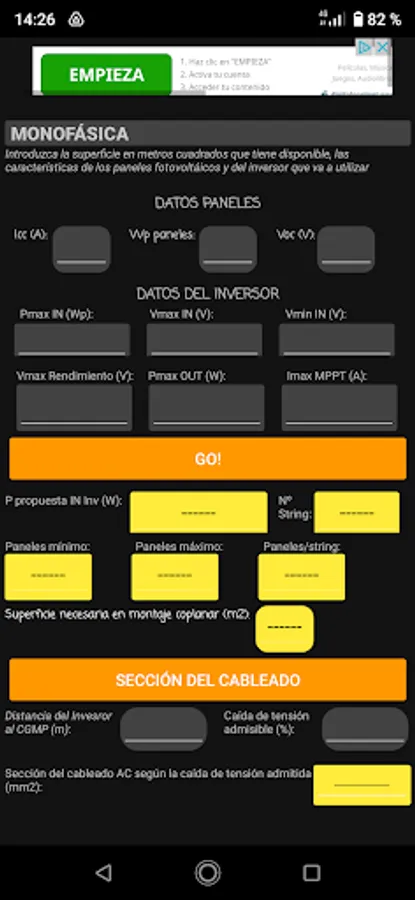 With this tool you will be able to calculate the necessary photovoltaic panels based on the technical parameters of the inverter and the parameters of the selected panels, depending on the power that you want/can install. It also offers a simplified calculation for users without technical knowledge, who have space in their homes for the installation of photovoltaic panels and have considered the possibility of undertaking a photovoltaic installation.