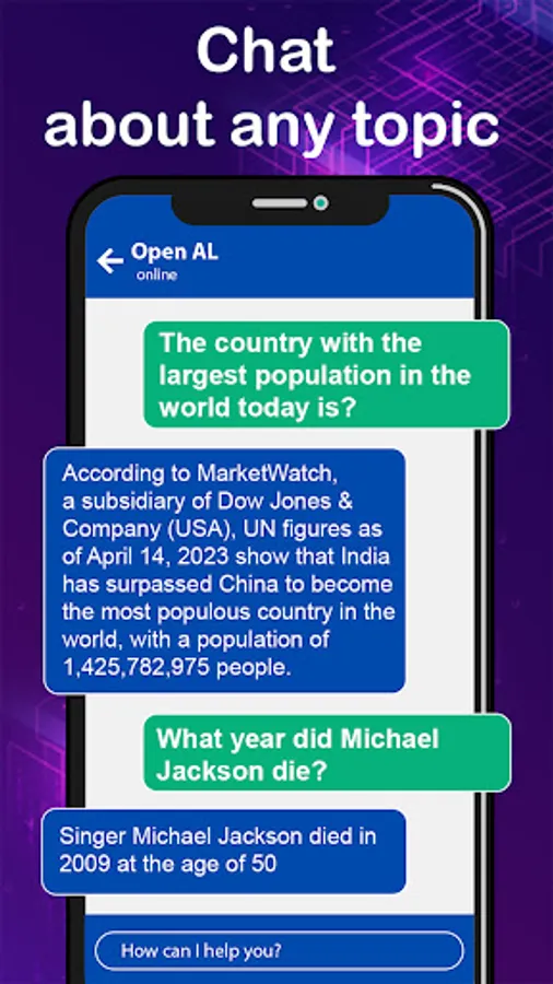 Chatbot Al is able to understand and engage with you on a wide range of topics, from current events to personal thoughts and feelings.
