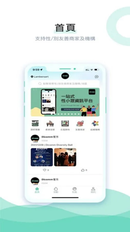 Dicomm (Diversity in Community) is a cutting-edge LGBTQ+ social media app created for LGBTQ+ to establish social network, receive community information and up-to-date news.