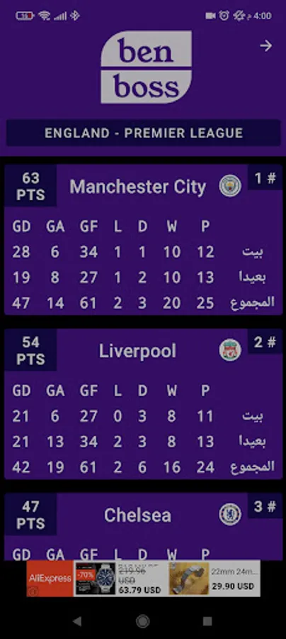 Ben Boss is dedicated to the live score, results, matches, H2H, classification and promotion of all major leagues in the World.