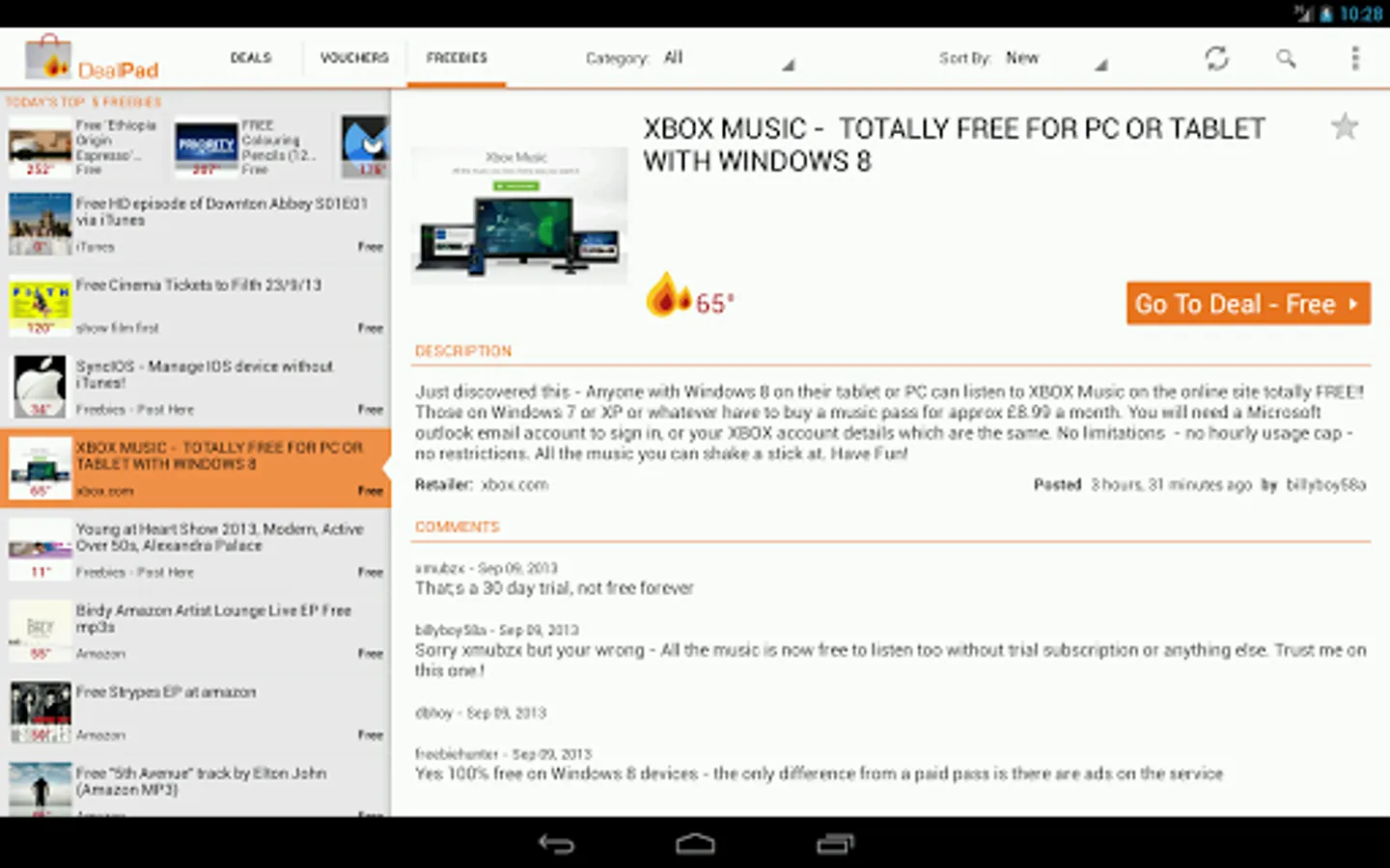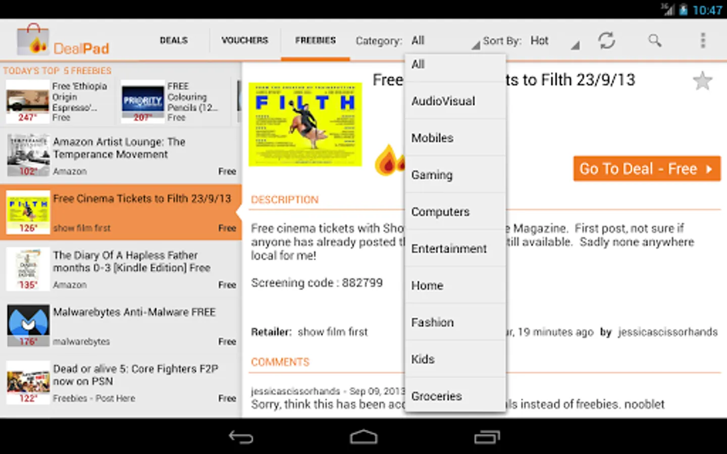 - Top 10 deals widget so you never miss the top bargains or freebies.