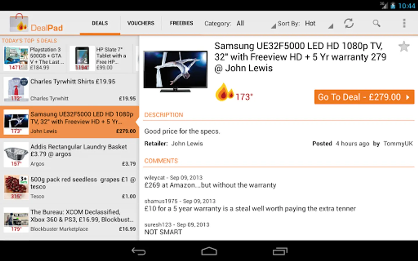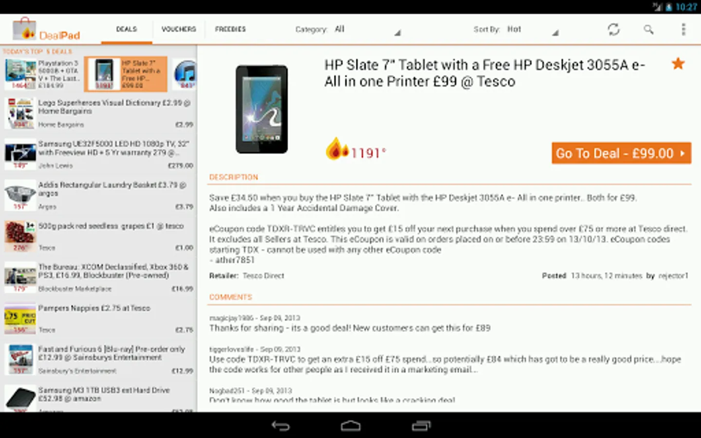 The application is specifically designed for Phones and Tablets giving your instant access to thousands of bargains shared by the HotUKDelas (hukd) community.