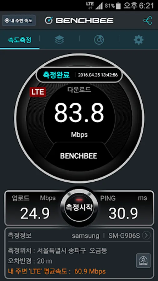 BenchBee Speedtest is designed to test MOBILE network speed. You can measure network performance easily.