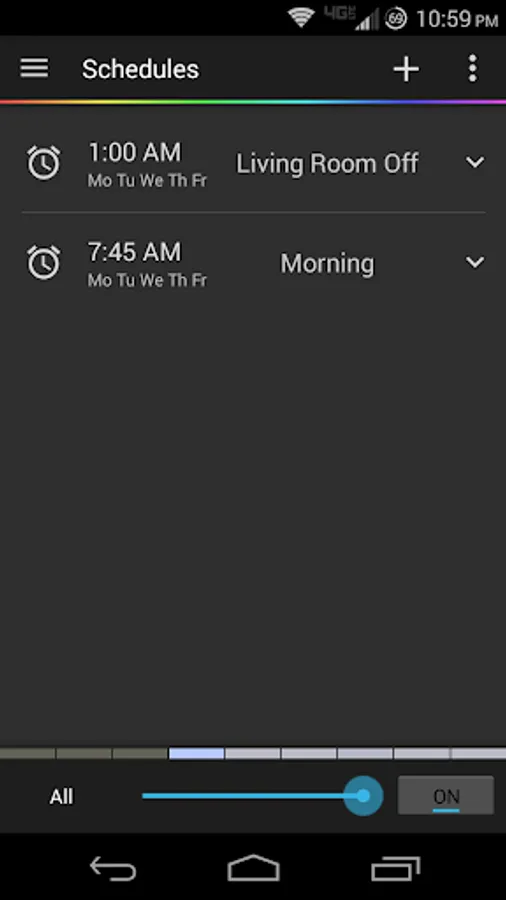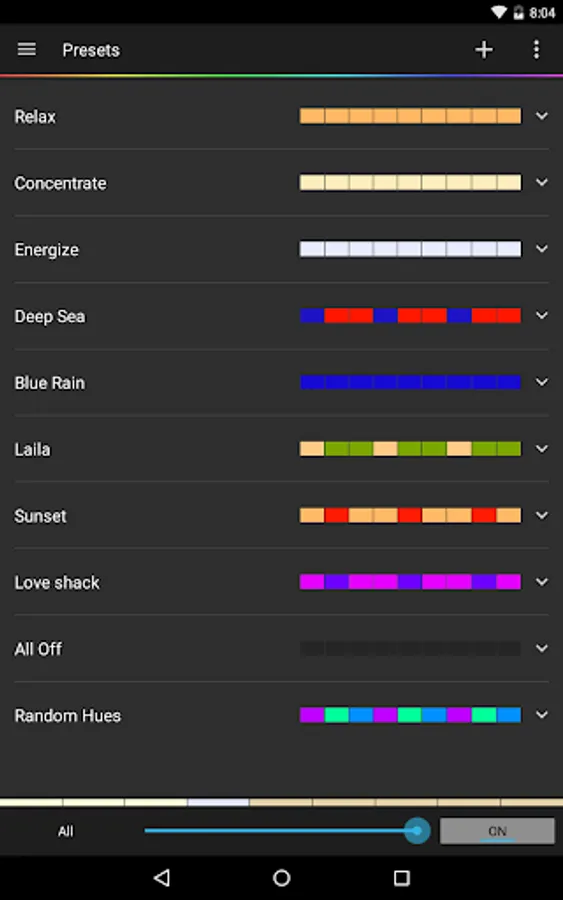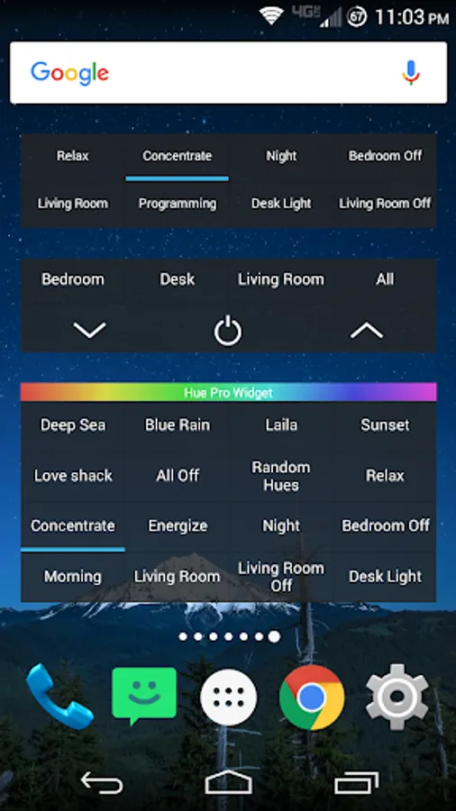 Hue Pro is a new way to use your Philips Hue lighting system. It provides all the features of the native Philips Hue Android application, such as lighting presets. But it can also be used for scheduling events with alarms and timers. By scheduling an event you can set light presets to come on (or off) at a specific time in the future!