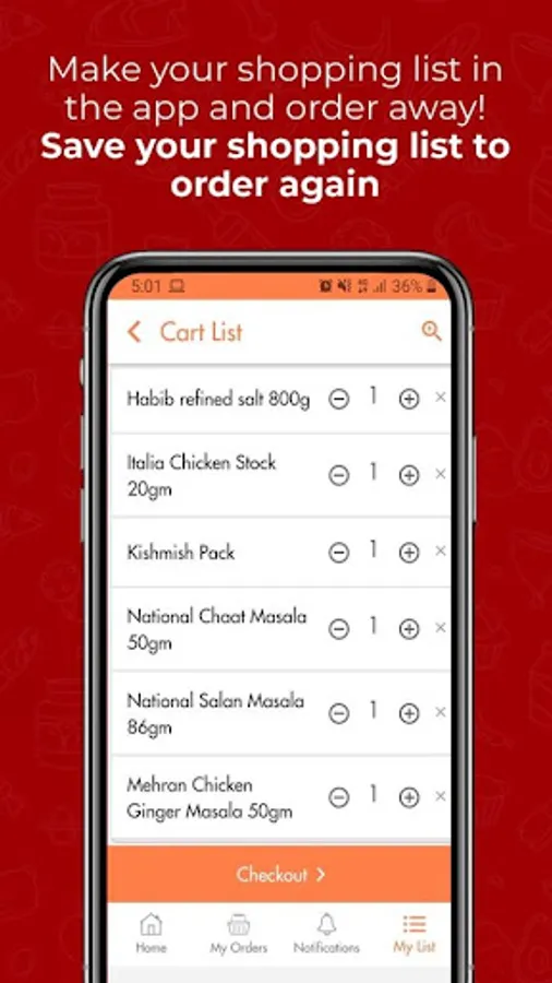 💫Make a list of your order items and save it for your next order.