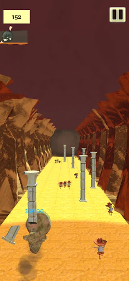 You’re Zoltec chasing a bunch of clay tomb robbers. Squish them to grow, avoid hitting walls, pillars, or traps that will make you shrink. Try to go as far as you can!