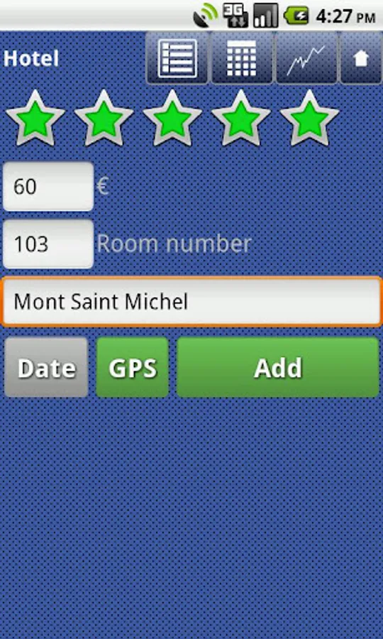 You'd like to remember restaurants, price (1 number), name (text), position (gps), your judgment (stars)