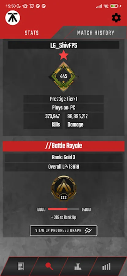 - Search and check player profile stats (level, ranks, match history...);