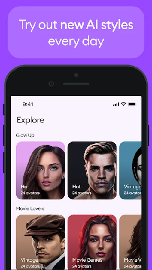 Plus, try our theme packs and purchase sets of images by style. Pick the packs that suit your personality, then sit back and relax while our AI generator gets to work. Share the results with your friends—and the world!
