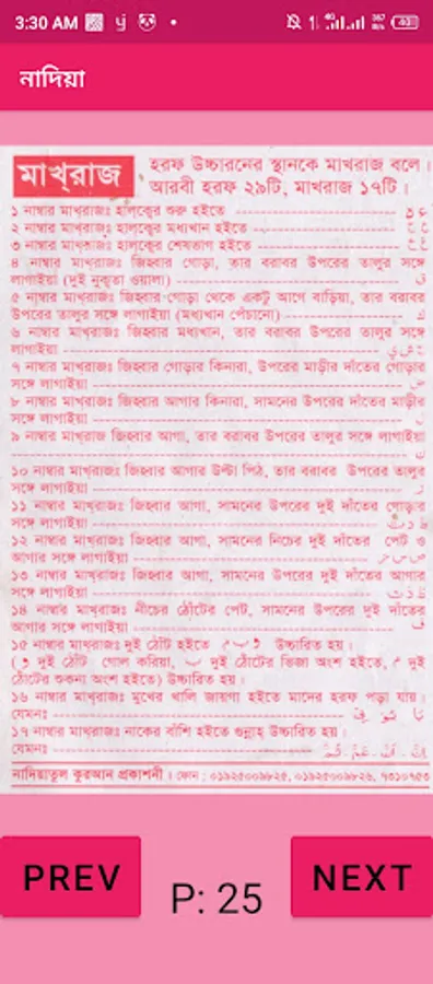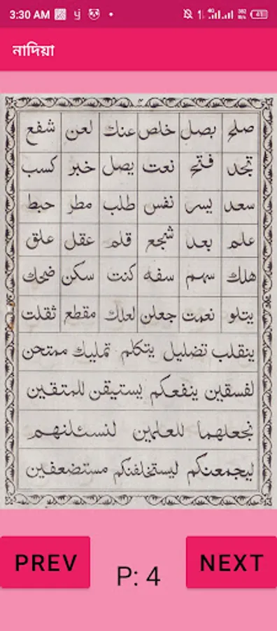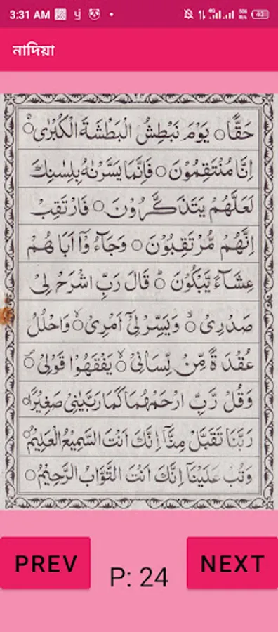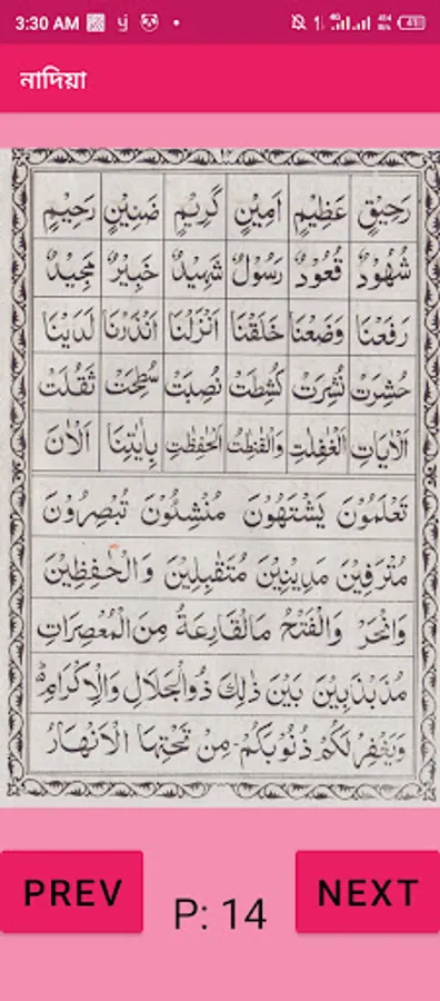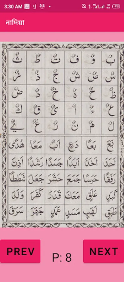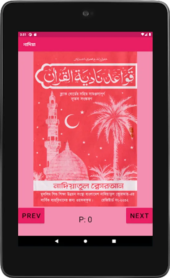 আরবী শেখার সহজ অ্যাপ।অল্প জায়গায় সম্পুর্ন নাদিয়া কায়দা পড়ুন ও শিখুন। ঝামেলাবিহীন একটি অ্যাপ। আসল বইয়ের মত করে ডানে বামে টেনে পৃষ্ঠা পাল্টানো যায়। যেকোন বয়সের মানুষের শেখার উপযোগী করে লেখা বইটি এখন অ্যাপ আকারে হাজির হল। বক্ষ্যমাণ পাতা নিচে সংখ্যা দেখতে পারবেন। পরবর্তী ও পূর্ববর্তী পাতায় যাবার জন্য রয়েছে সুদৃশ্য বড় দুটি বাটন। সবকটি পাতা দেখা শেষ হলে আবার ফিরে আসে প্রথম পাতায়। বিশেষ কোন জটিল ফাংশন নাই। খুবই সাদামাঠা উপস্থাপনার মাধ্যমে অ্যাপটি তুলে ধরা হয়েছে।