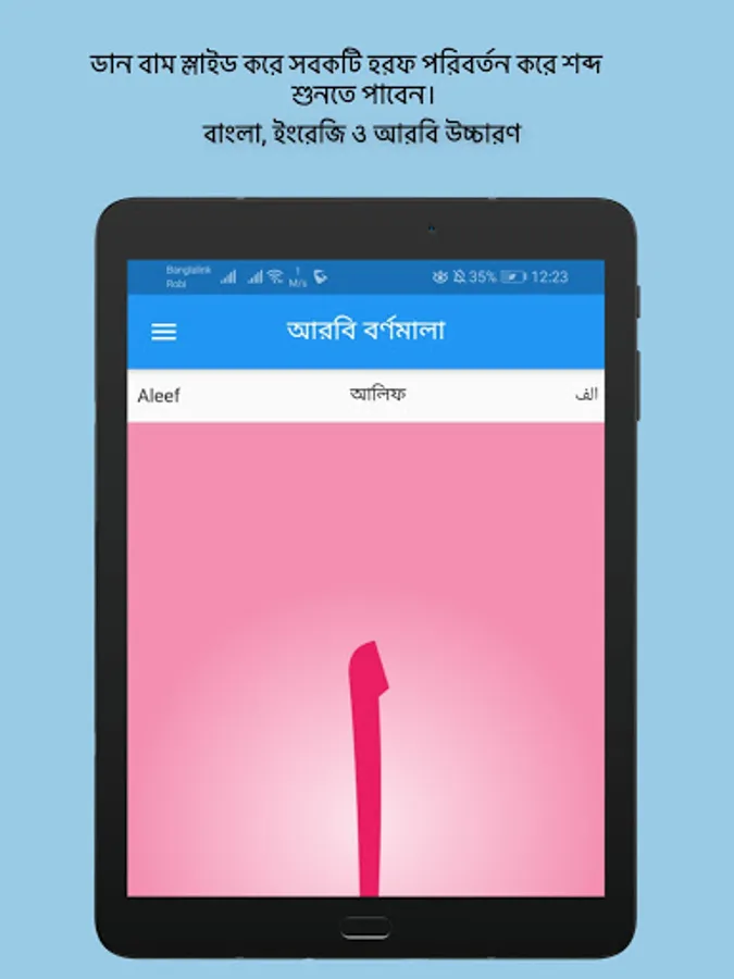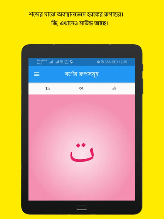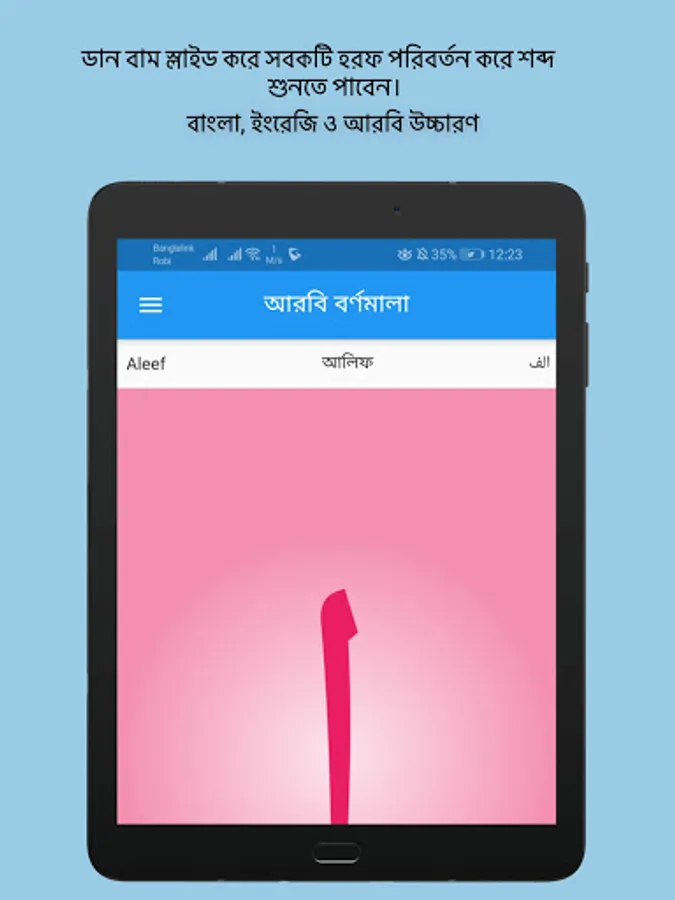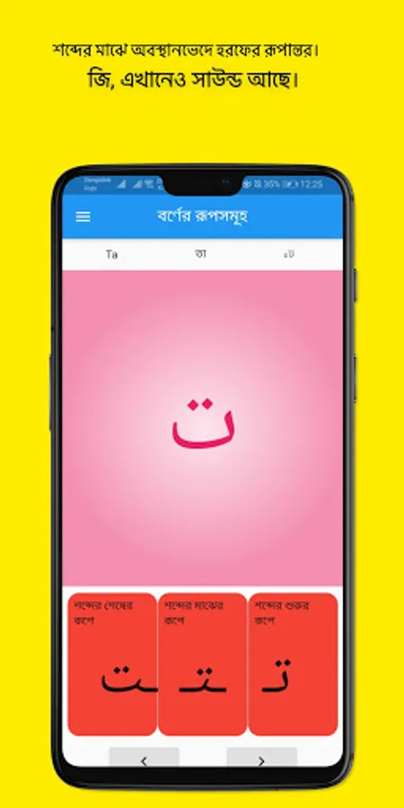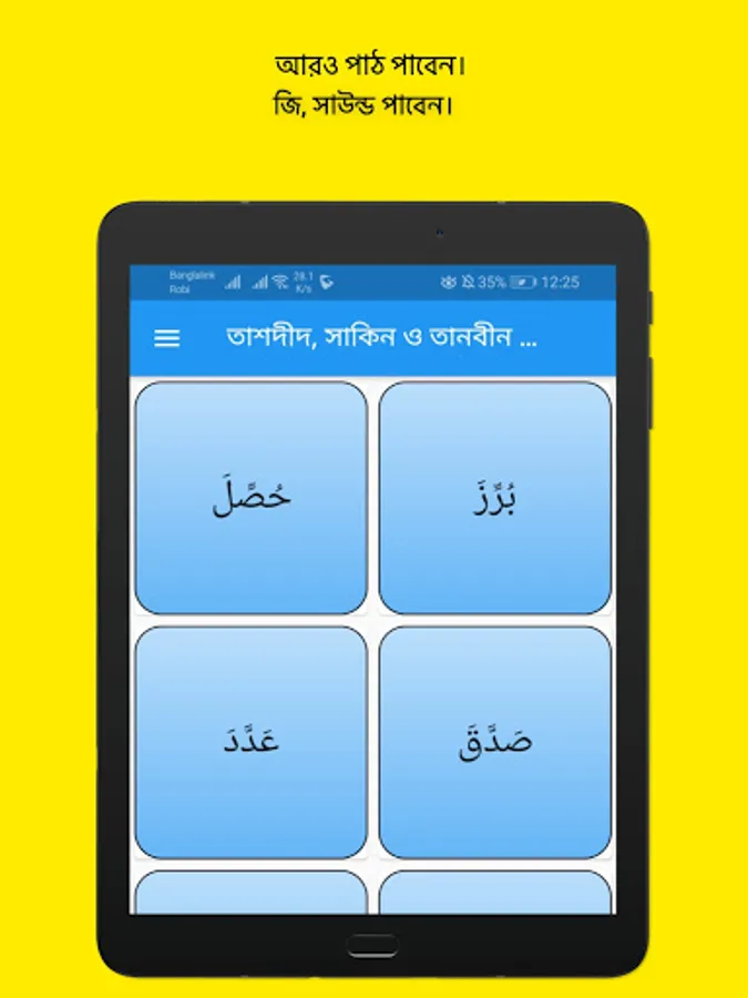 উচ্চারণ শুনতে পারবেন যতবার খুশি। আরবি বর্ণমালা, প্রত্যেকটি হরফের উচ্চারণ পাবেন, ধ্বনিতে, সুন্দর ও কোয়ালিটি পুর্ন। অ্যাপটি নির্মিত হয়েছে বিভিন্ন লেভেল হিসেবে। প্রত্যেকটি লেভেলের জন্য রয়েছে চমৎকার ও আকর্ষণীয় ইন্টারফেস, সুনির্দিষ্ট বিষয়ভিত্তিক পাঠ।