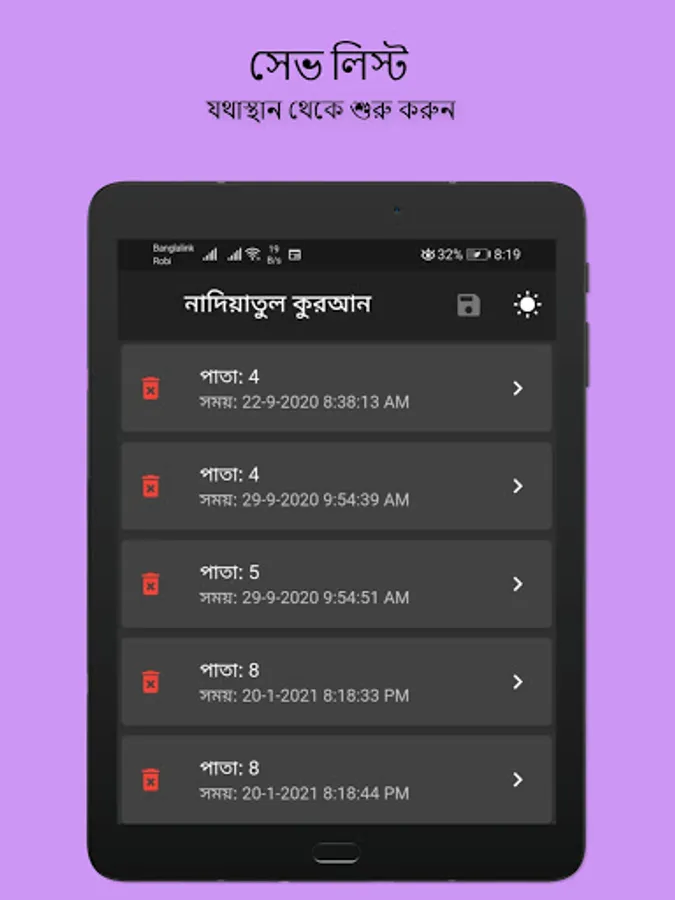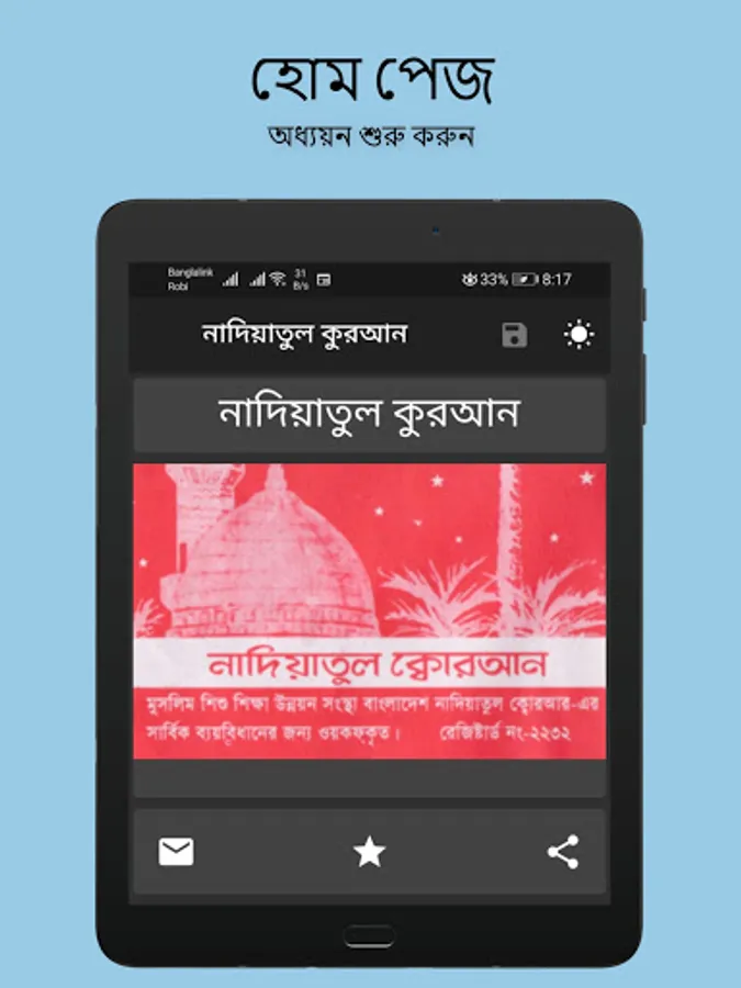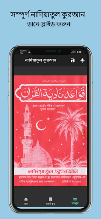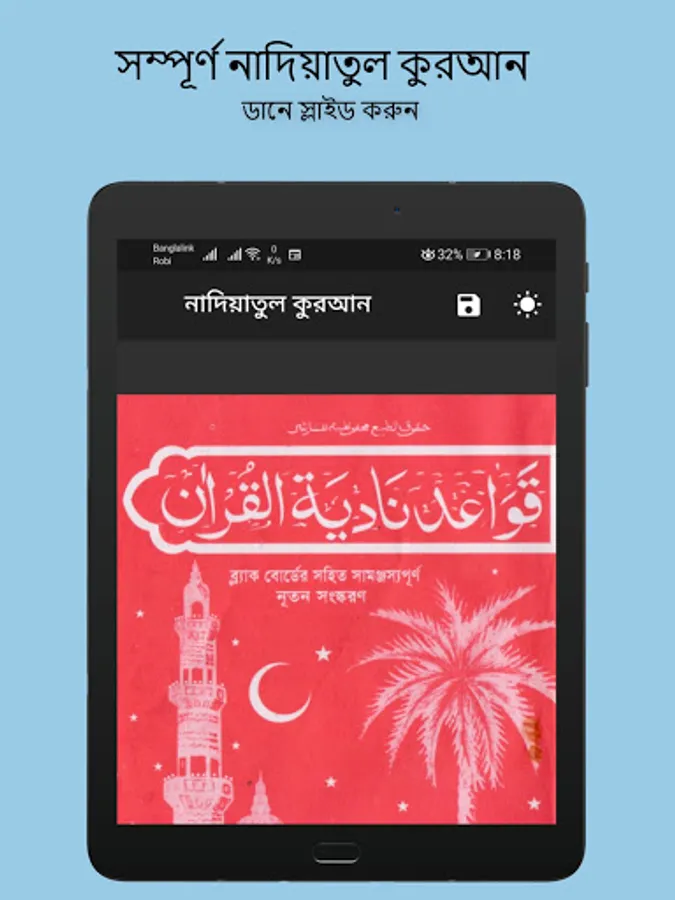 নাদিয়াতুল কুরআন Nadiatul Quran আরবি শেখার ও কুরআন শেখার জনপ্রিয় বই। এখন অ্যাপ আকারে নিয়ে আসা হল। এখানে দিন ও রাত উভয় সময়ে পাঠের উপযোগী দৃশ্যপট নির্মাণ করা হয়েছে। পাঠের স্থান সেভ করে রাখার জন্য ডাটাবেস ব্যবহার করা হয়েছে। সুন্দর দেখতে এবং ব্যবহার উপযোগী ।
