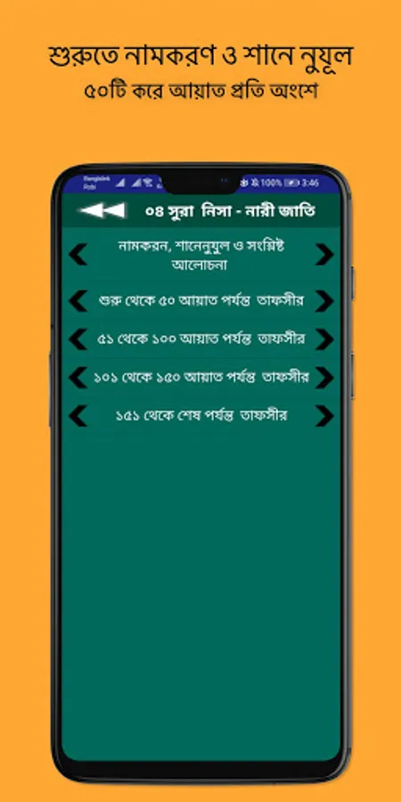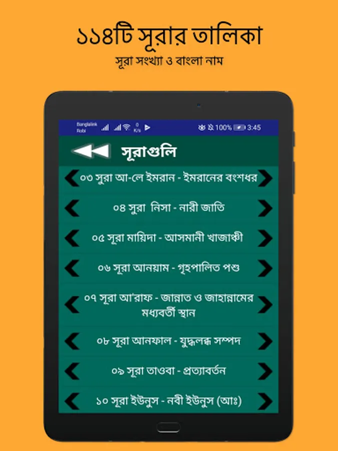 114 Suras along with Arabic Ayat text, translation, explanation, substances.