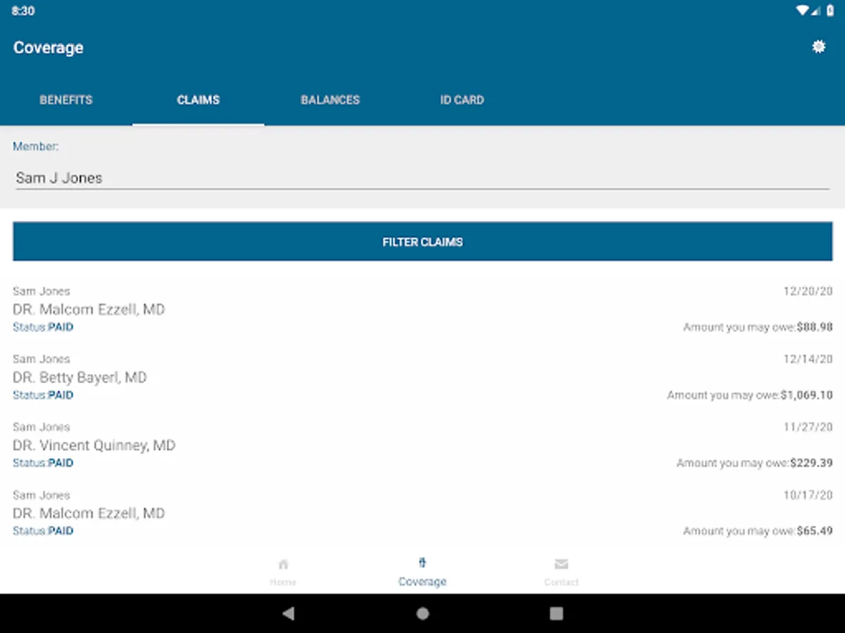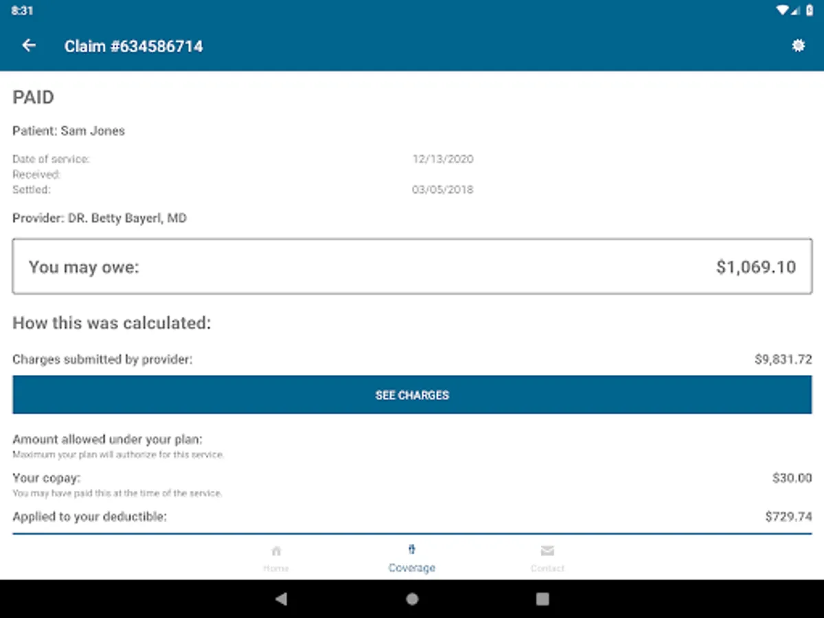 See your recent claims, get a detailed view of each one and view your Explanation of Benefits (EOB).