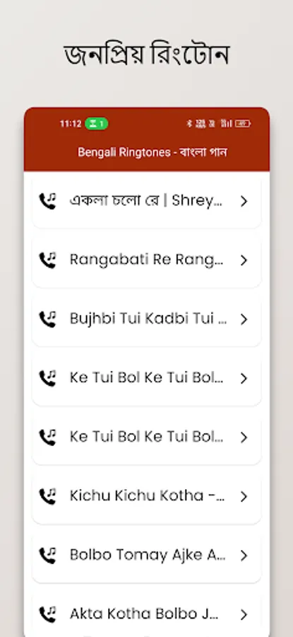 Bengali Ringtones - বাংলা গান celebrates the cultural heritage of Bengal and the timeless artistry of its musicians. Whether you want to relive nostalgic moments, immerse yourself in the rich tapestry of Bengali music, or simply make a style statement with your phone's ringtone, this app will take you on an unforgettable journey.