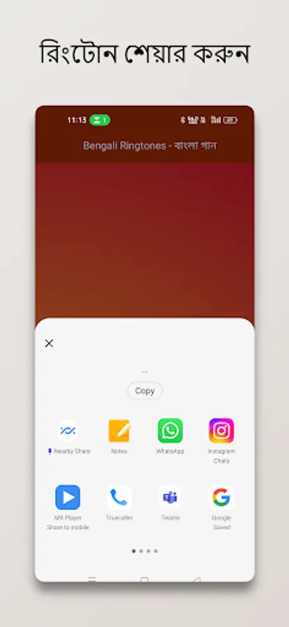 Share with Friends: Share your newfound musical treasures with your friends and family effortlessly. Spread the joy of Bengali music by sending them your favorite ringtones via messaging apps or social media platforms directly from the app.