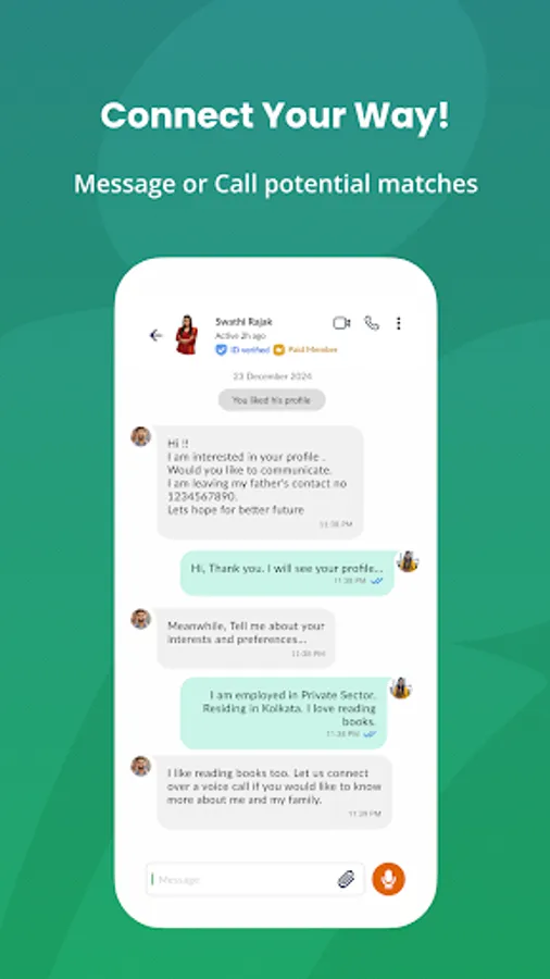 -> Chat & Voice Call: Connect with matches anytime & anywhere with our secure instant chat & voice calling features.