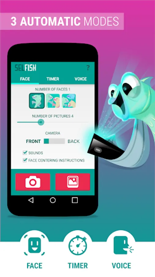 ► Voice Command - Choose a magic keyword, Selfish will take a picture every time you say it.