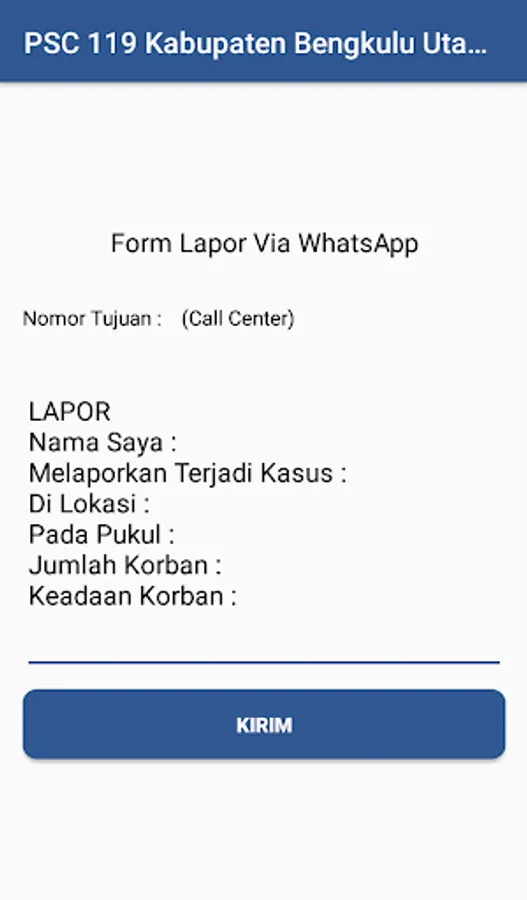 This application can help the people of Bengkulu Utara Regency to get emergency assistance on time and also involve them actively to report any emergency situations in their environment. Apart from that, the app also provides information about first aid kits, contact numbers, maps, etc.