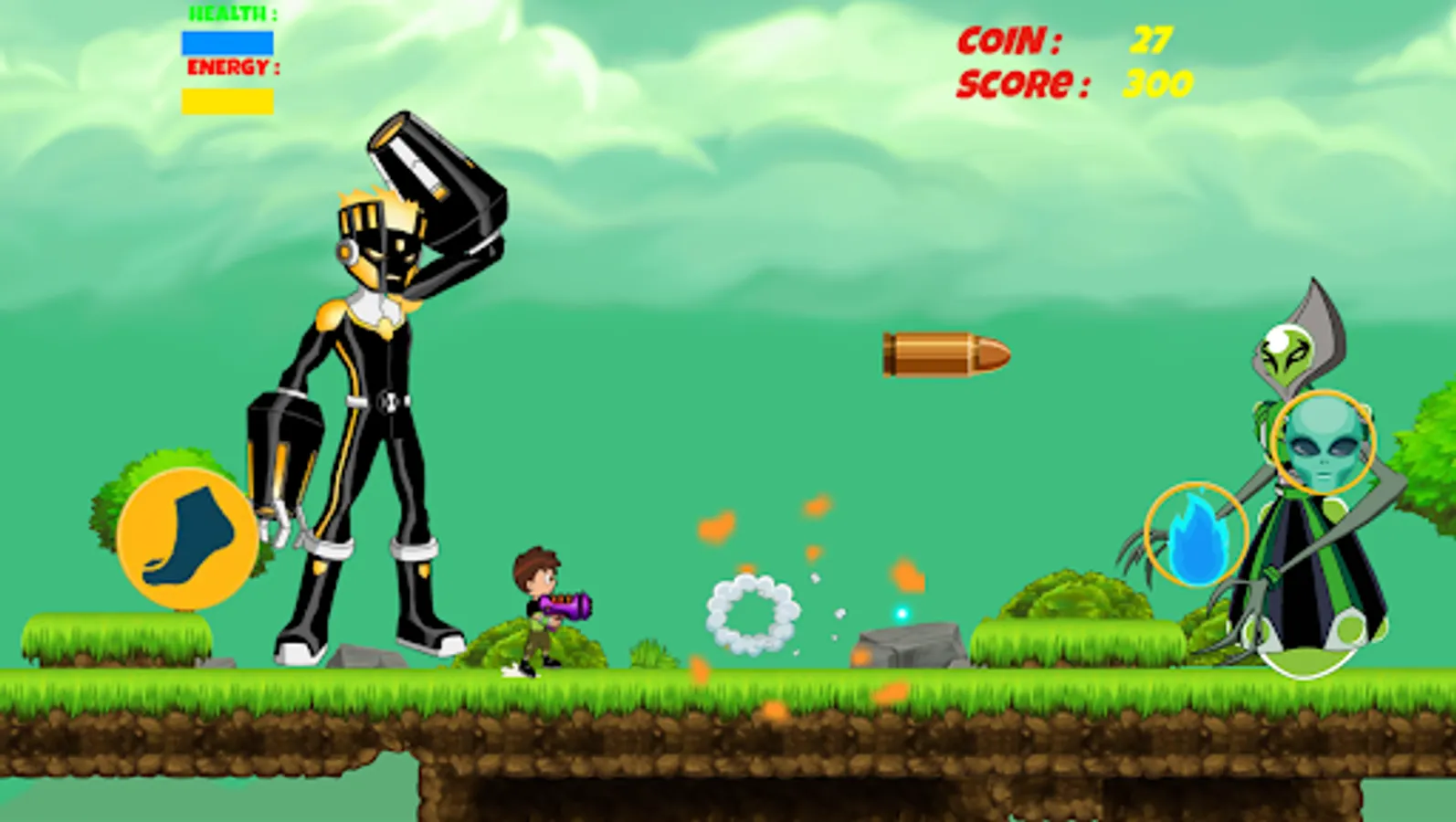 This alien game featuring cool graphic and platformer gameplay, once upon a time there's a bad alien invading ben planet and universe, looking earth almost perish, ben using his power to take down bad enemies by summoning his super cool alien to face bad enemy, there's 10 ben alien you can obtain in the end of game, make sure you guide ben to final boss