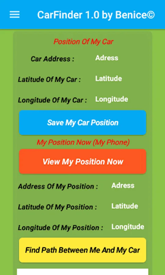 Never Lose your parked car again, you and your car together again and every time you need, you can show all location and area by map .