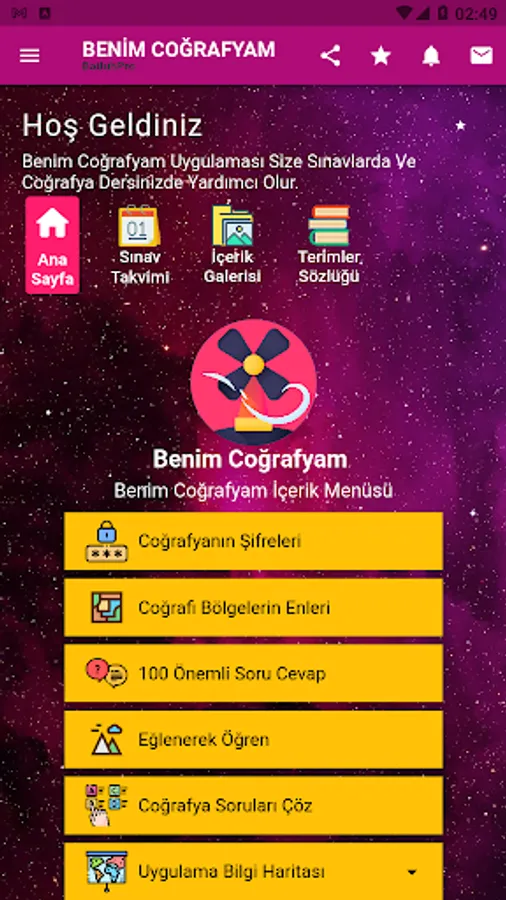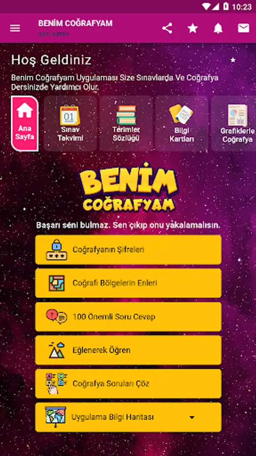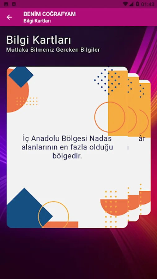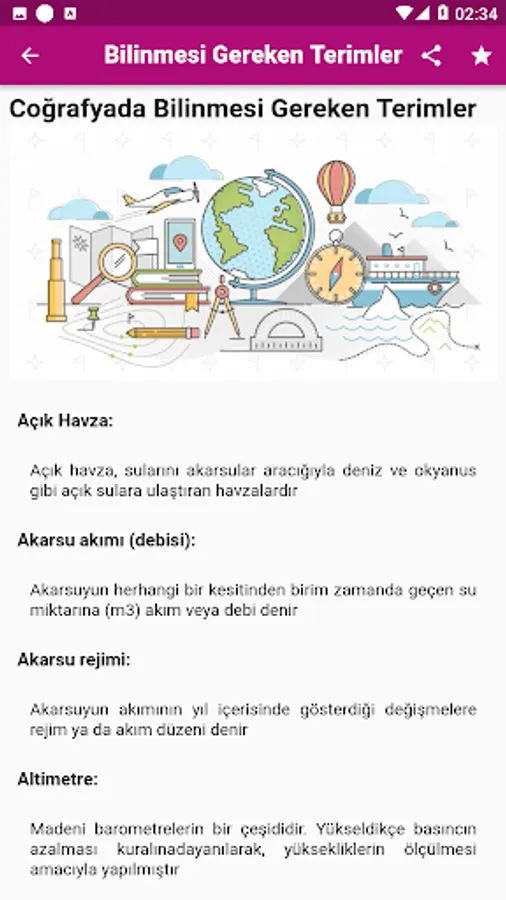 My geography app helps you in your exams in Geography lesson and Topics. In the Geography test, which is included in the general aptitude test and asks an average of 18 questions, my geography application is your best assistant in order to create an application where the candidates can be more clear and easily study and read information from their smartphones that are with them in every sense, and to increase the success of the candidates.