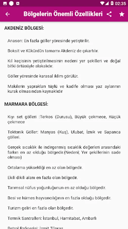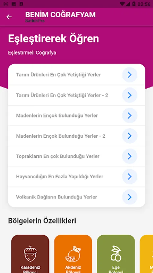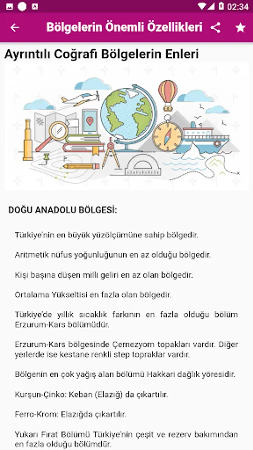 In My Geography: "Mountains, plains, lakes, plateaus, climate and vegetation, mines, agricultural products, etc. You can learn a lot of information in a concise and quality way."