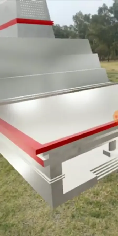 Users have the option of using the temple information panels as markers to activate the augmented reality model, or they can use the floor or lawn of a park or house to see the temple wherever they are.