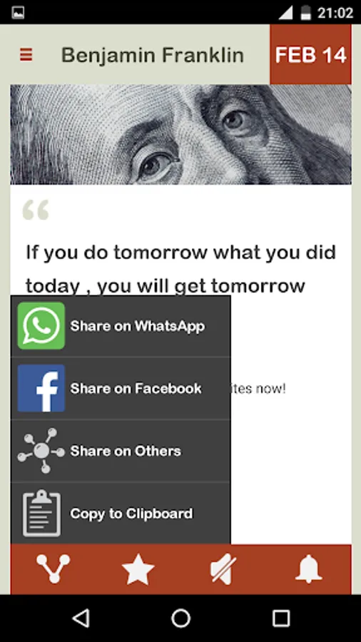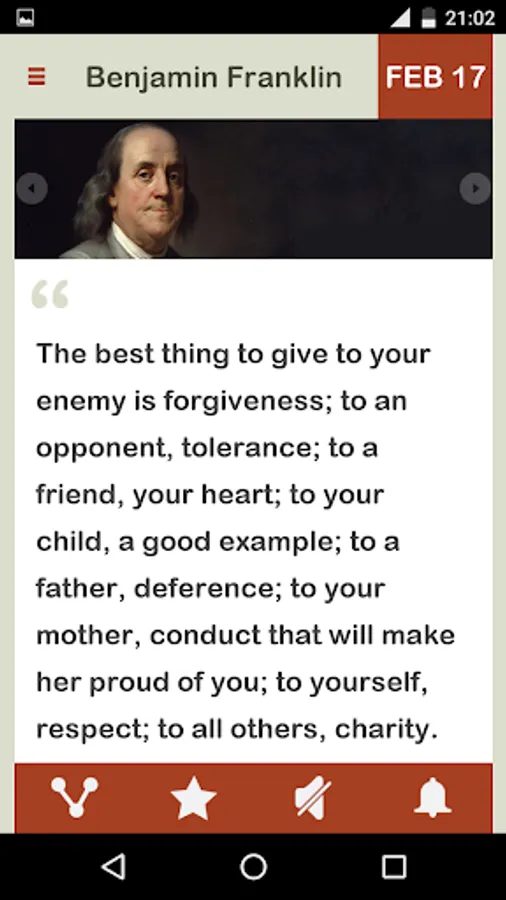 Benjamin Franklin Daily brings the wisdom of Sir Benjamin to you in a form of Mobile App, wake up every day, with Benjamin Franklin's Motivational wisdom, starting today.