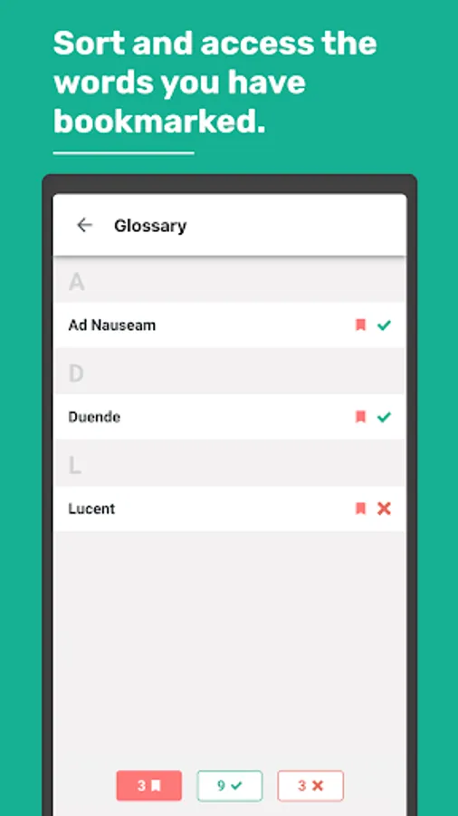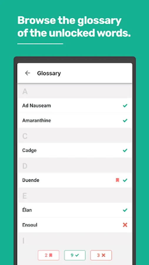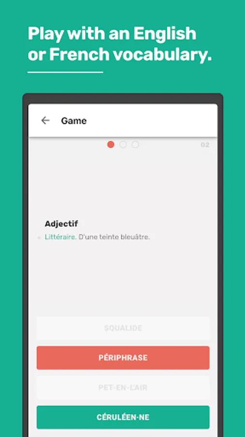 You will also be able to consult the definitions of the words you have played and bookmark them to find them easily on the glossary.