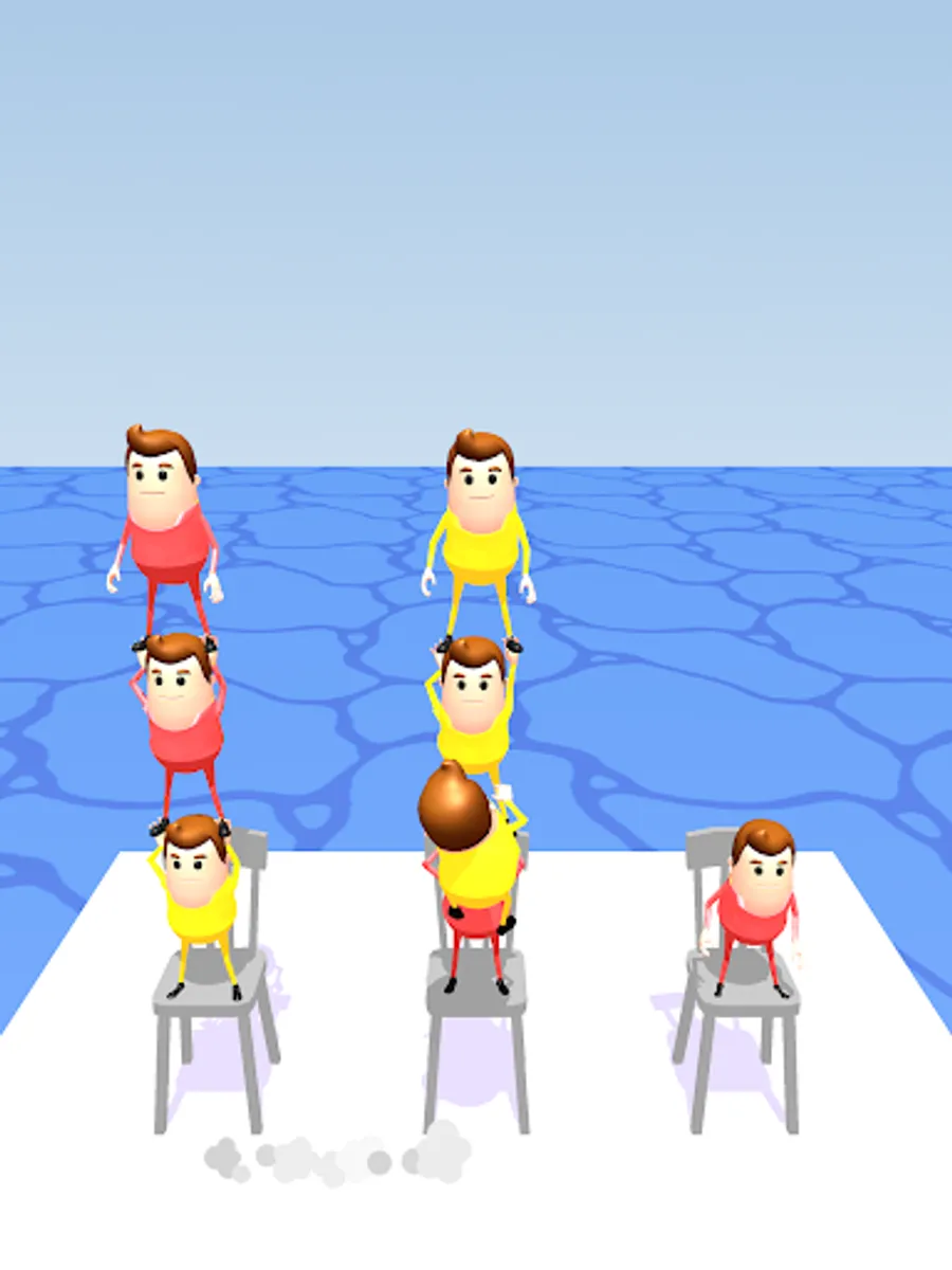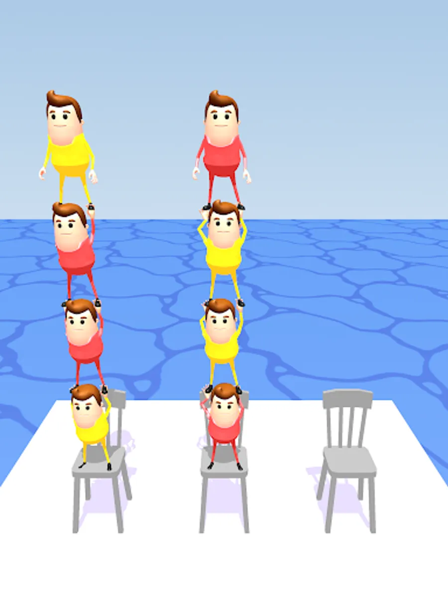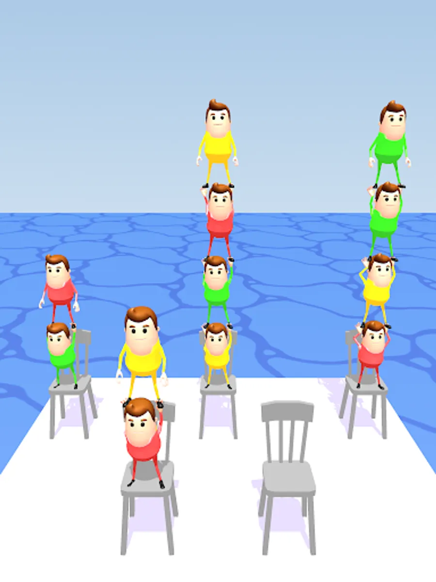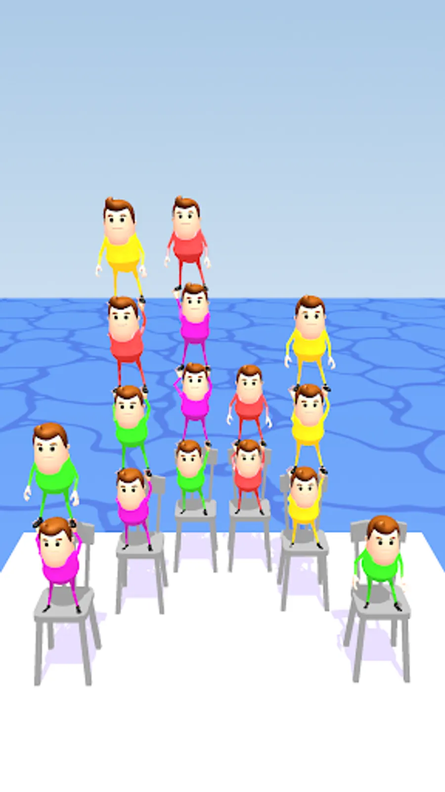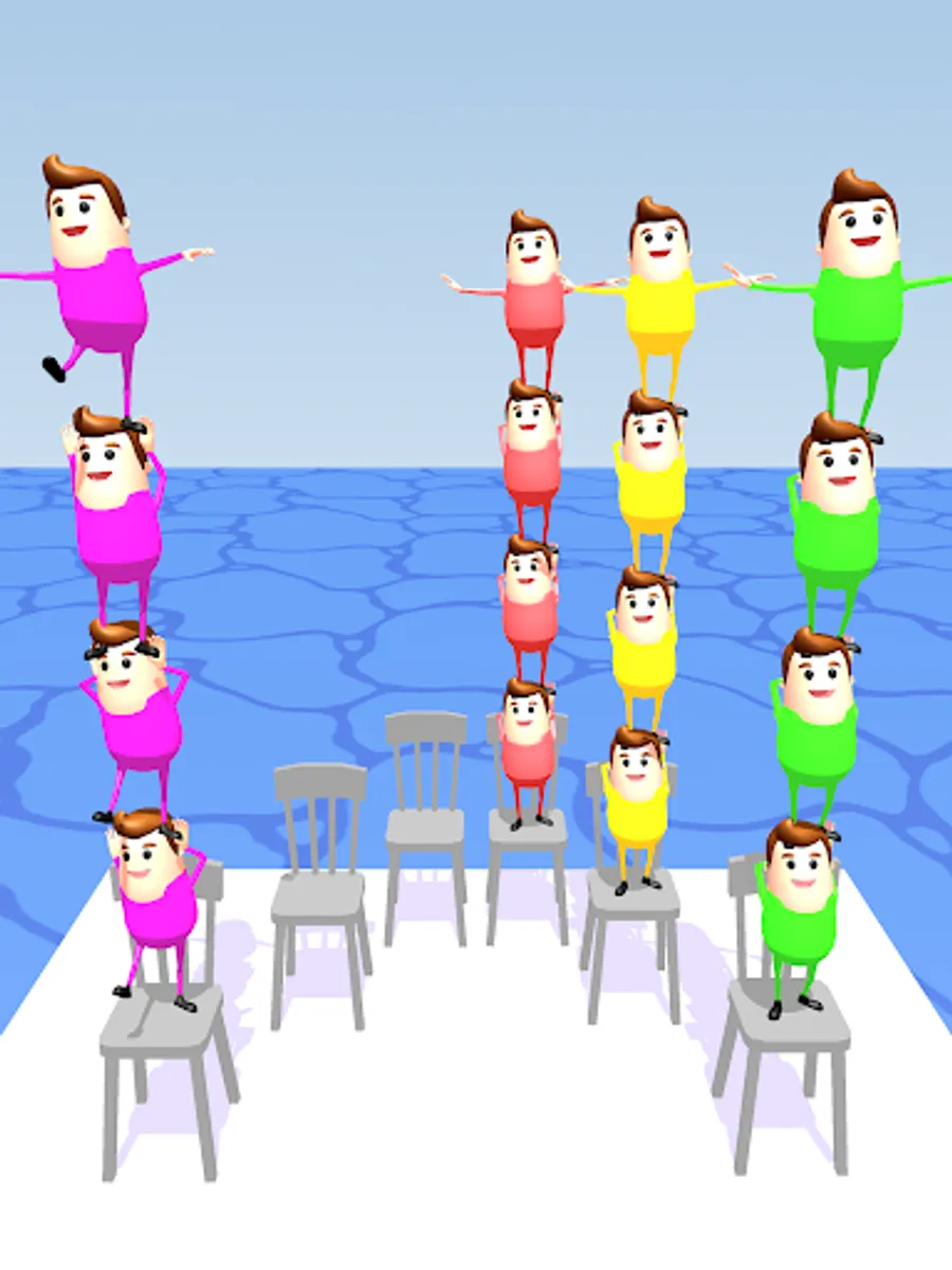 Sort these crazy people by their clothes color. Make them climb on each other to form a tower and sort them all!