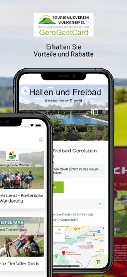 The GeroGastCard app offers guests of the Gerolsteiner Land many attractive advantages and discounts! You will receive a code from your host to activate this app and you can then benefit from these offers every day during your stay in Gerolsteiner Land. Some coupons can be redeemed once during your stay, some even every day.