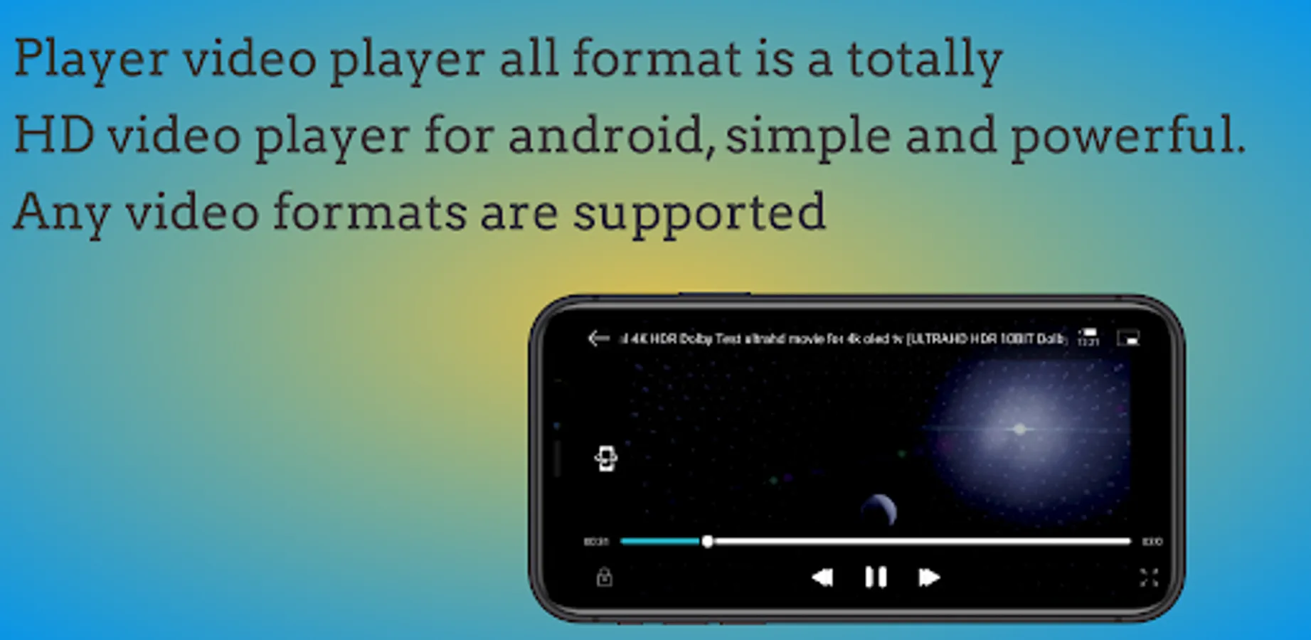Video Player All Format supports ALL video formats, 4K/ultra HD video files, and plays them with high-definition. It is one of the best HD video players for android tablets and android phones.