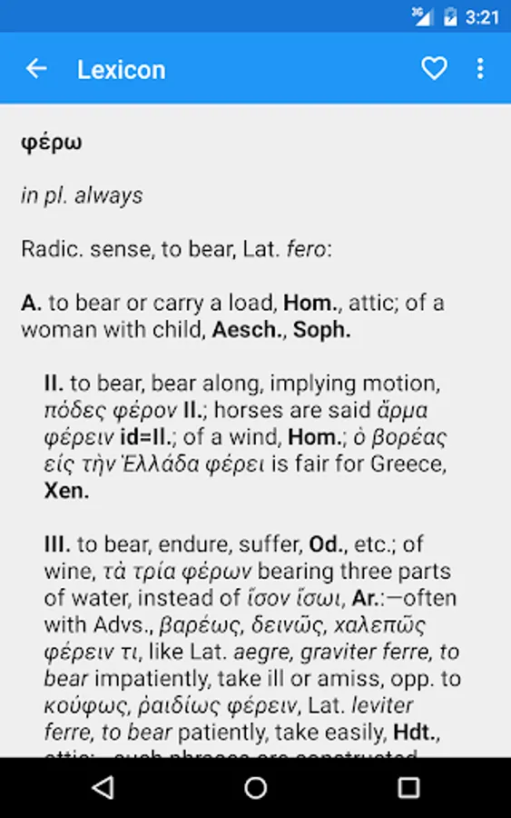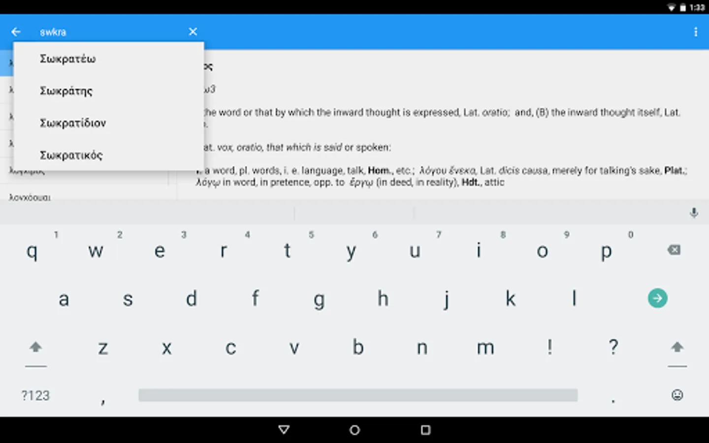 • Flexible lexicon search with instant search suggestions. Search using either Beta code or Greek characters.